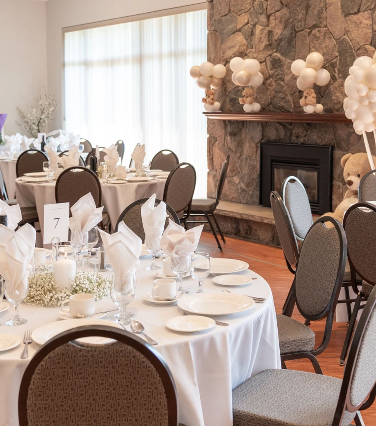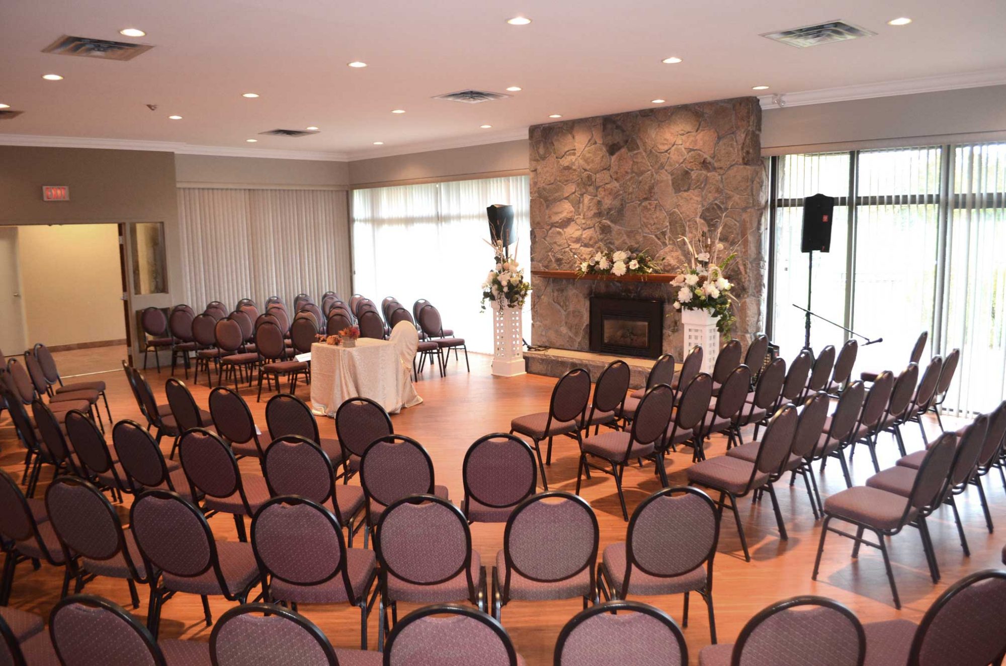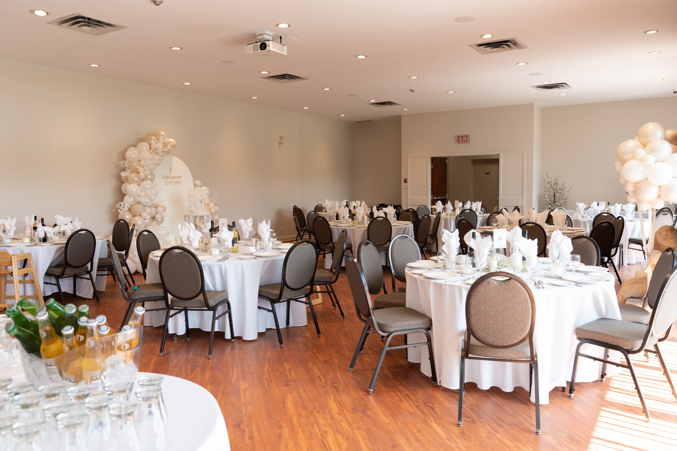 Warm and inviting, the Arbour Room is perfect for more intimate gatherings. With 1,176 square feet of space, 12-foot ceilings, and flexible setup options, it comfortably seats up to 120 guests theatre-style or 70 for a banquet. Ideal for meetings, family celebrations, or smaller ceremonies, this 28′ x 42′ room offers a cozy atmosphere without sacrificing functionality or style.