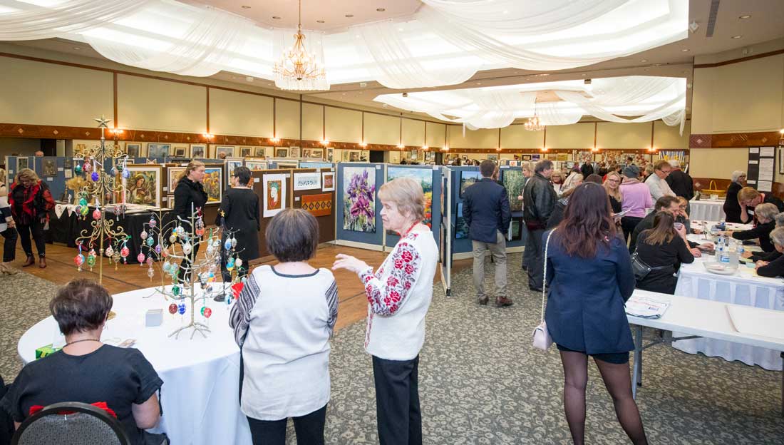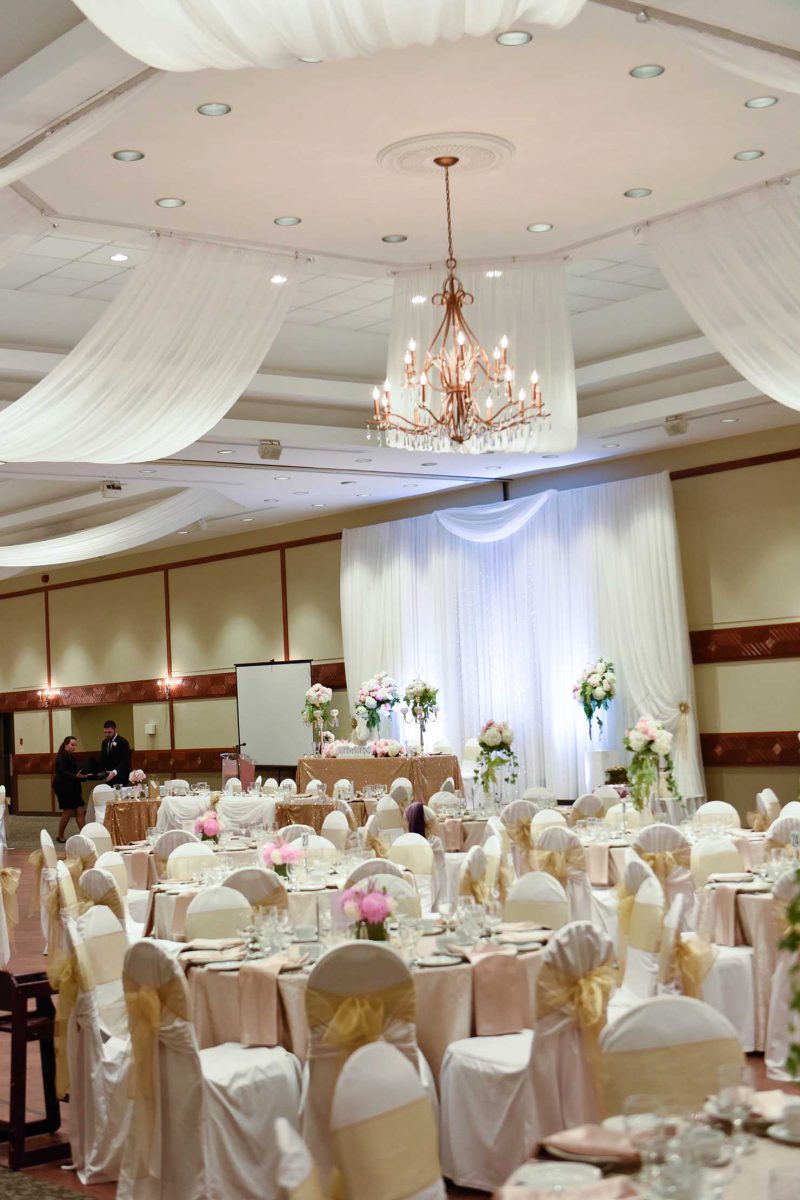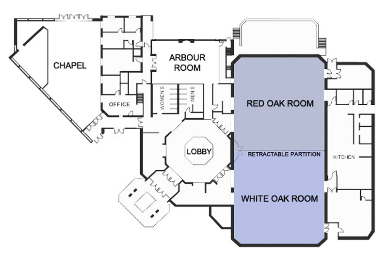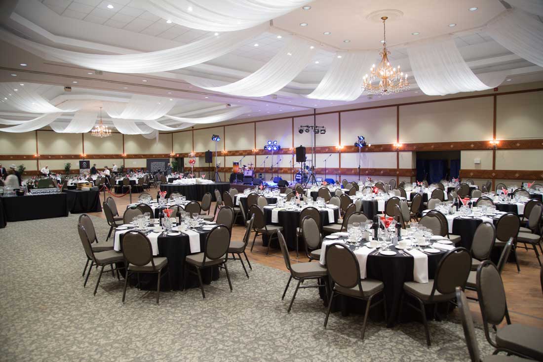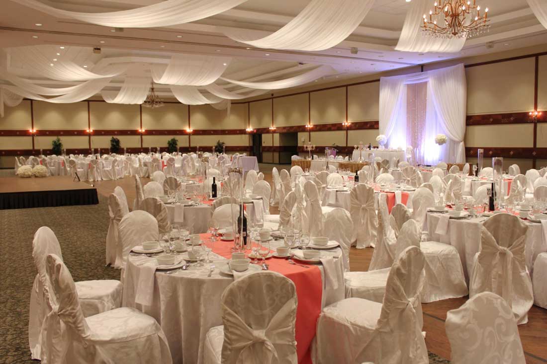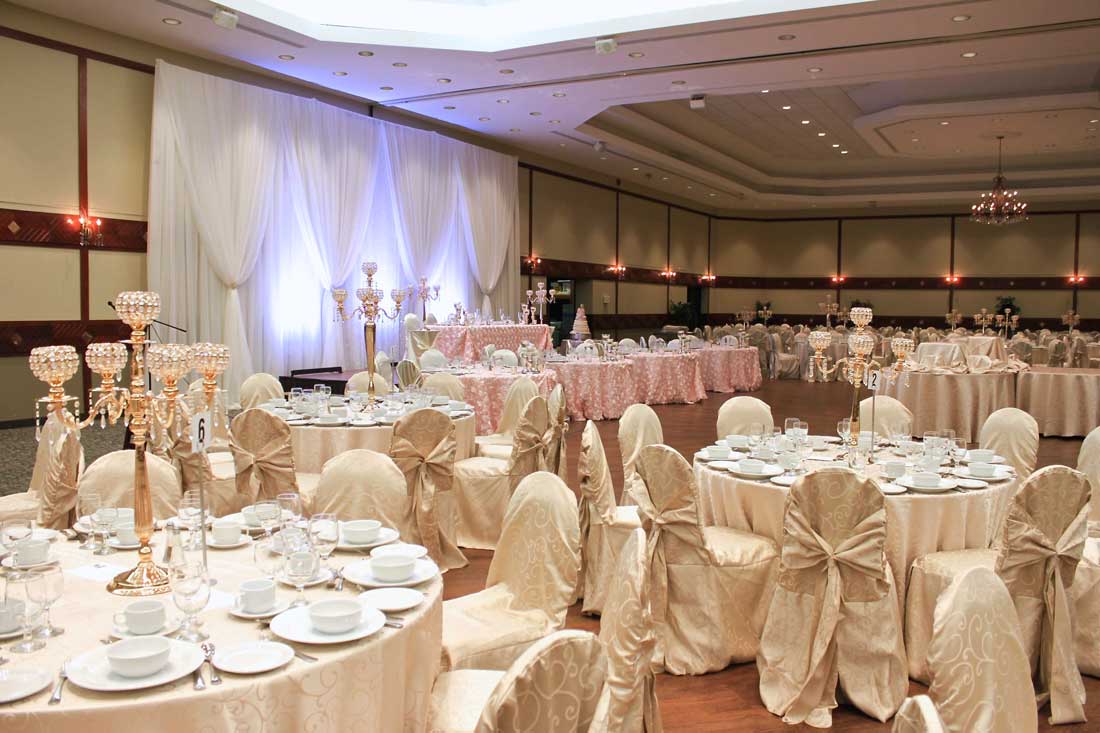 Spanning nearly 8,000 square feet with soaring 19-foot ceilings, the Red & White Oak Room is the largest indoor space at St. Volodymyr Events Centre. This impressive 62′ x 128′ hall can comfortably accommodate up to 1,100 guests in theatre-style seating or 600 for a banquet, making it ideal for large gatherings such as weddings, conferences, graduations, or cultural celebrations. With its spacious layout and flexible setup options, this venue offers both elegance and practicality for events of all kinds.
